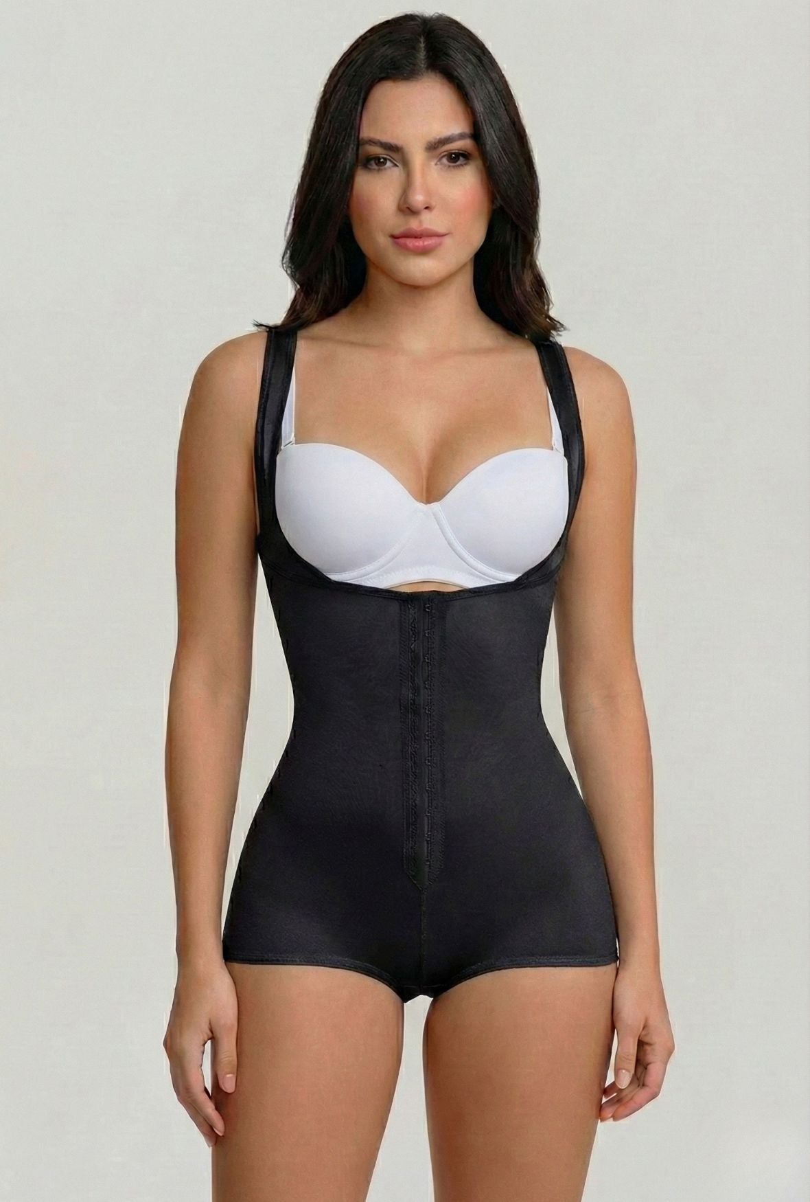 Shape your body in style with this open-bust boy short bodysuit! Its wide straps and high-quality fabrics provide effective compression and support for the waist, hips, and thighs while allowing for maximum comfort. Look and feel amazing in this slimming bodysuit! Product Code: 936